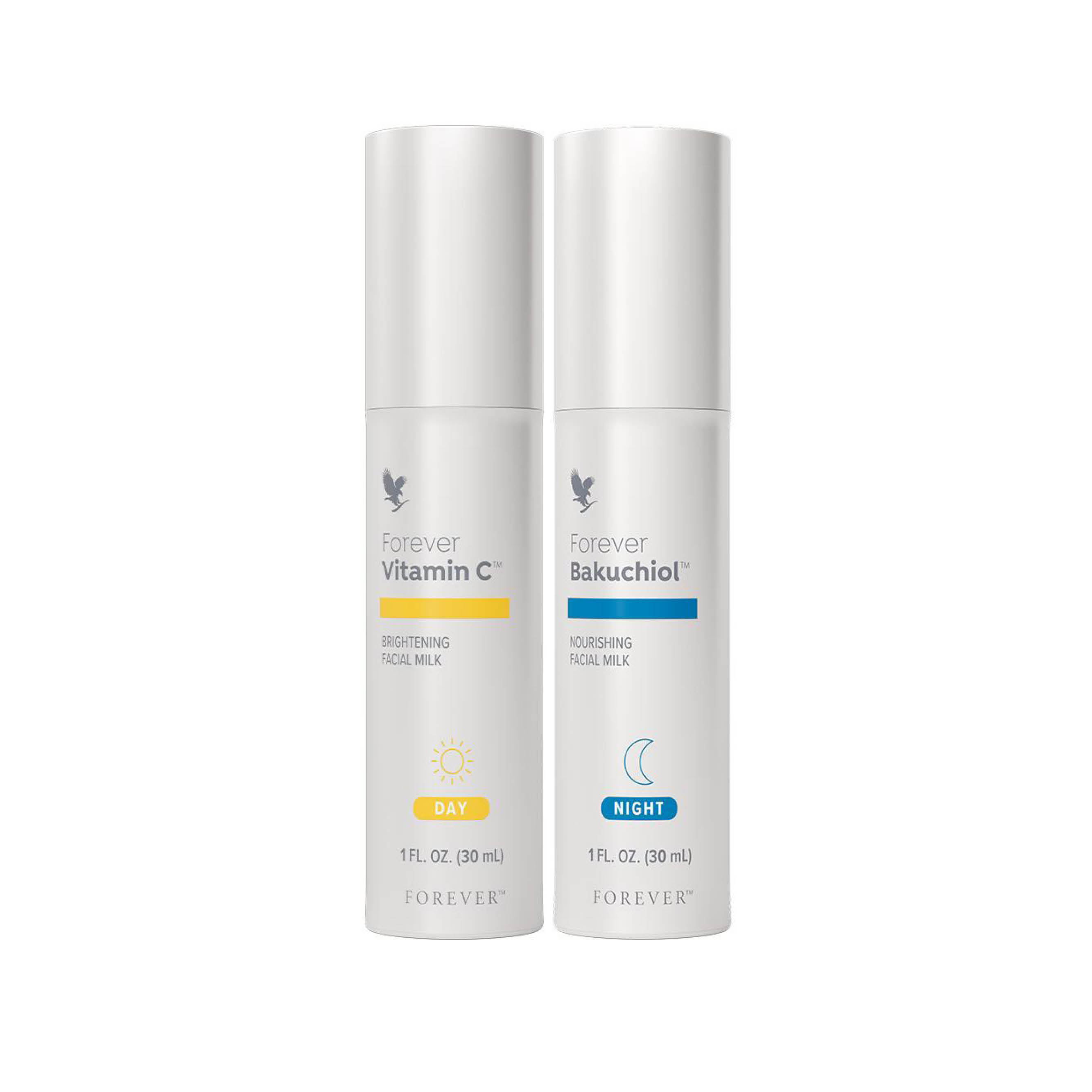 Dieses Duo fügt sich mühelos in deine tägliche Routine ein – morgens Vitamin C™, abends Bakuchiol™ – und es lässt sich optimal mit allen weiteren FOREVER-Hautpflegeprodukten kombinieren.